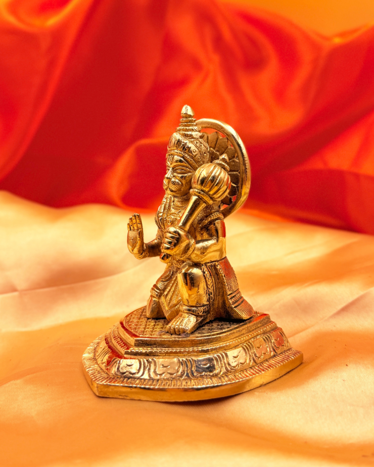 · Design: Lord Hanuman seated gracefully on one folded leg, holding his gada (mace) and blessing devotees with his raised hand