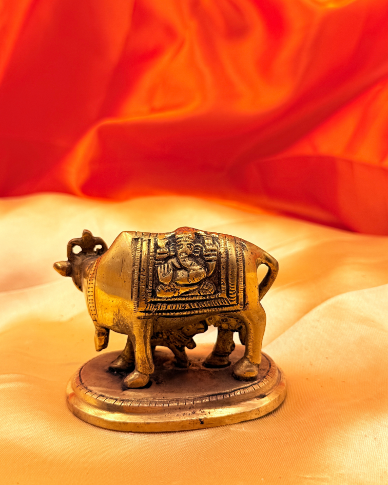 · Design:Kamdhenu depicted with a calf beside her, and ganesh Lakshmi embossed on her body symbolizing all divine energies residing within