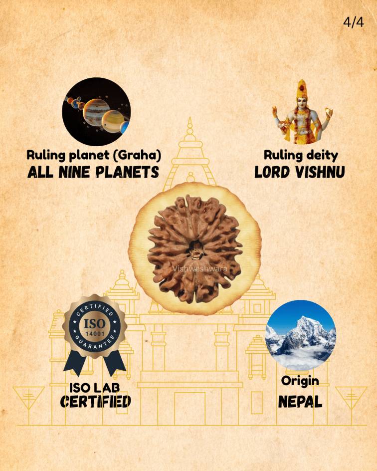 Embrace divine protection and inner calm with the powerful 10 Mukhi Rudraksha from Nepal, symbolizing Lord Vishnu, the Preserver of the Universe. This rare and sacred bead is believed to neutralize negative energies, evil spirits, and planetary imbalances, offering spiritual stability and peace of mind. Size: 26.00 mm, Weight: 3.97g