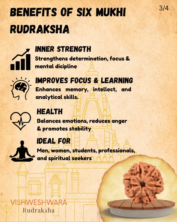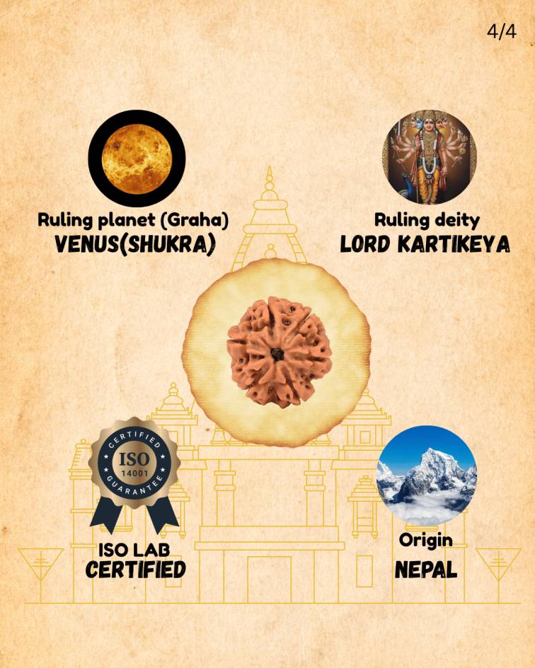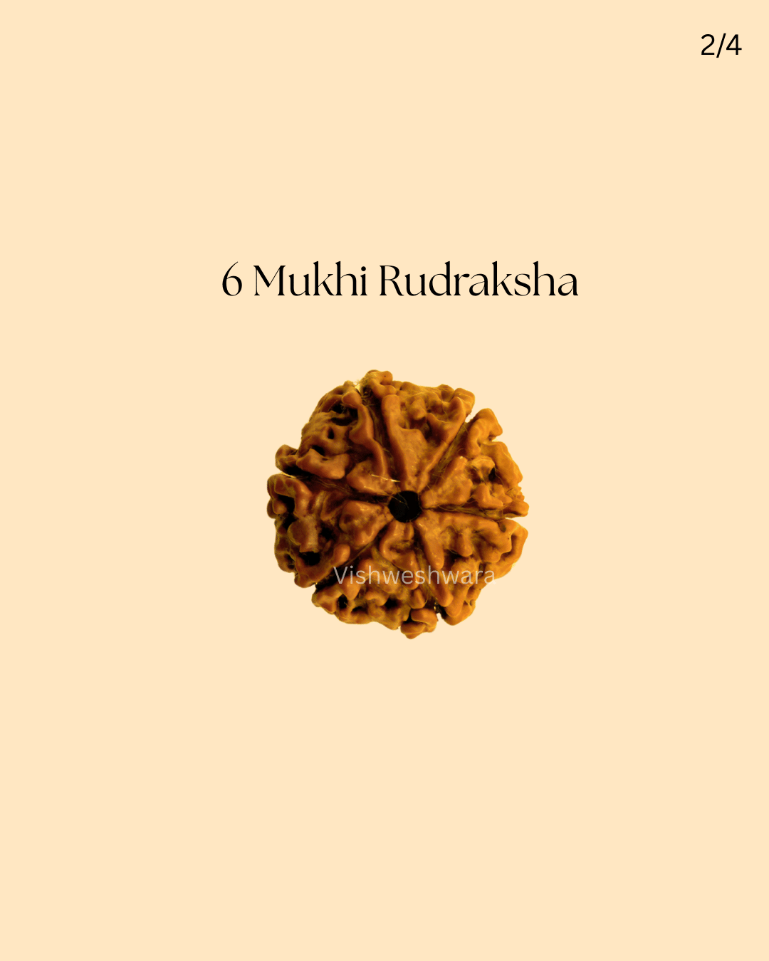 Unlock your inner strength, discipline, and clarity with the sacred 6 Mukhi Rudraksha from Nepal. This divine bead represents Lord Kartikeya (Murugan), the warrior son of Lord Shiva, known to increase Focus, Strength & Balance. Size: 24mm, weight: 3.31g