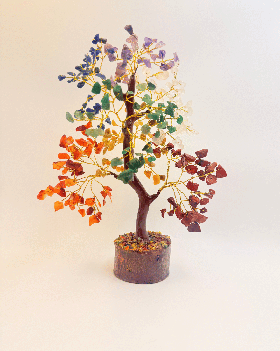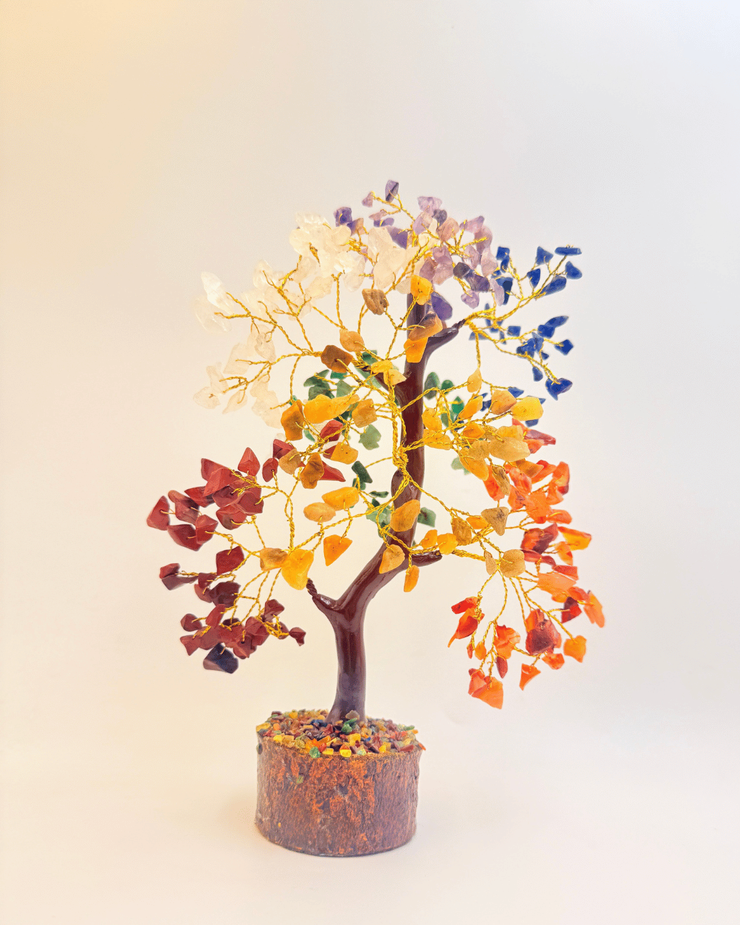 Balance your mind, body, and spirit with this handcrafted 7 Chakra Gemstone Tree. Made with natural crystal chips representing the seven chakras, this tree symbolizes healing, positivity, and spiritual growth. Each stone aligns with one chakra, helping to cleanse energy and restore balance in life.