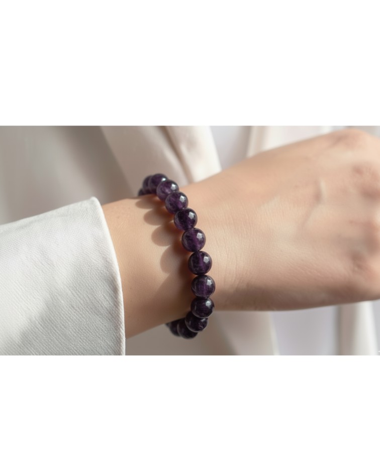 The Amethyst Bracelet is a symbol of peace, balance, and spiritual growth. Known for its soothing purple hue, Amethyst is believed to calm the mind, relieve stress, and enhance intuition. Wearing this bracelet is said to promote emotional balance, support meditation, and protect against negative energies.