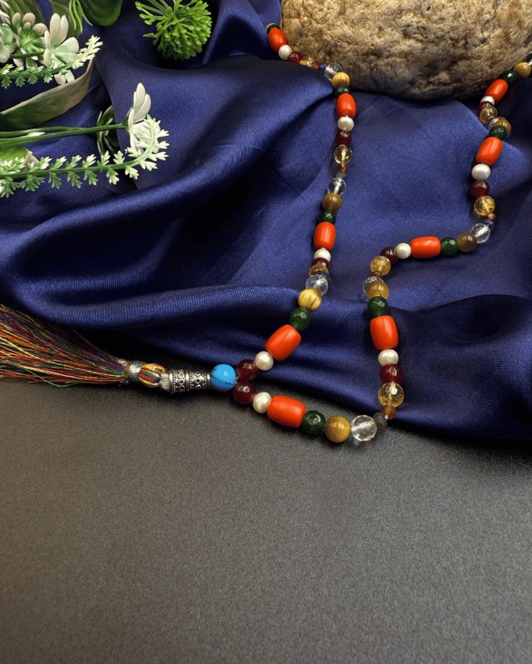 Harness the combined power of the nine sacred gemstones with this traditional Navratna Mala, designed to balance planetary energies and bring holistic well-being. Each bead in this mala represents a celestial body, making it a powerful tool for astrological harmony, protection, and spiritual growth.