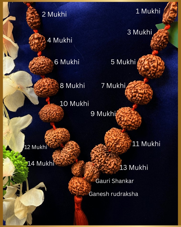 Beads Included: 1 Mukhi to 14 Mukhi + Ganesh + Gaurishankar Rudraksha