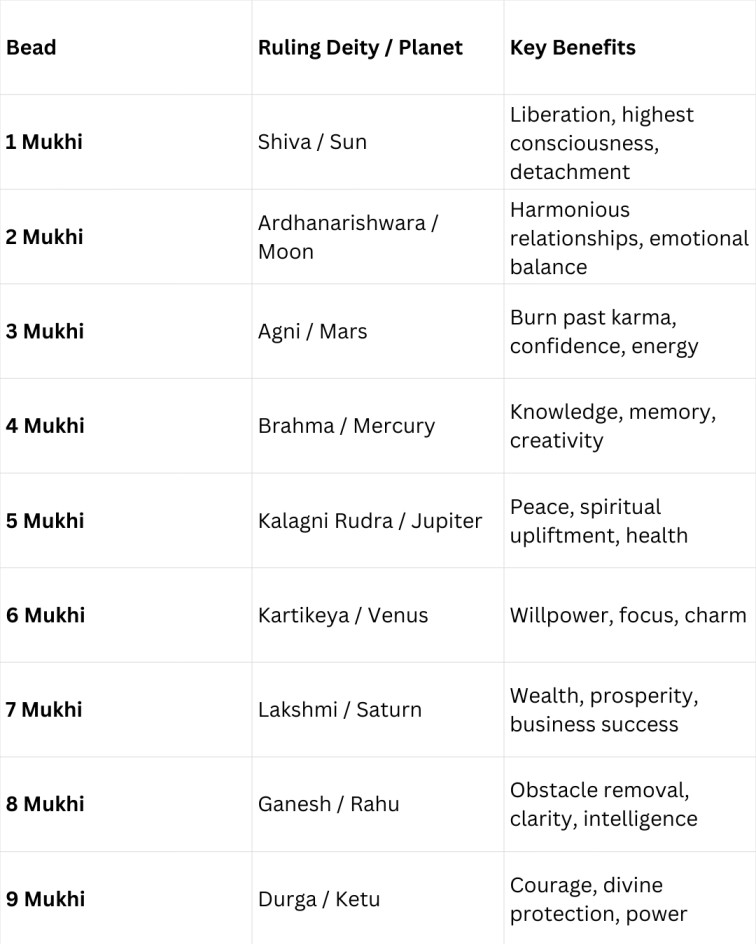 1 Mukhi – Supreme consciousness, oneness with Shiva