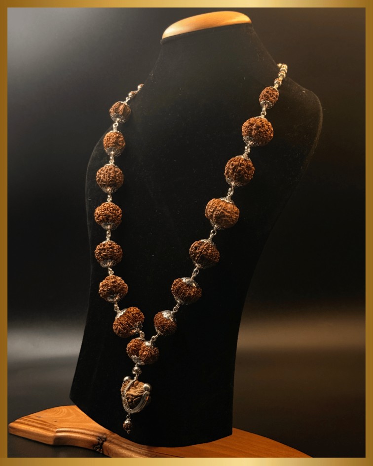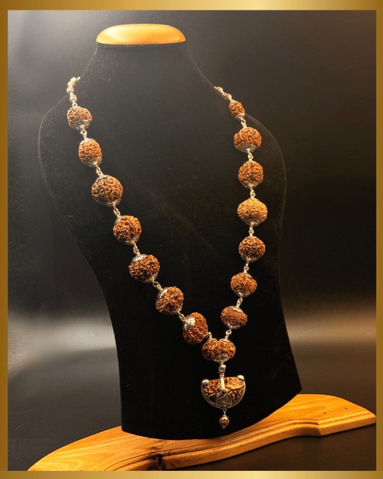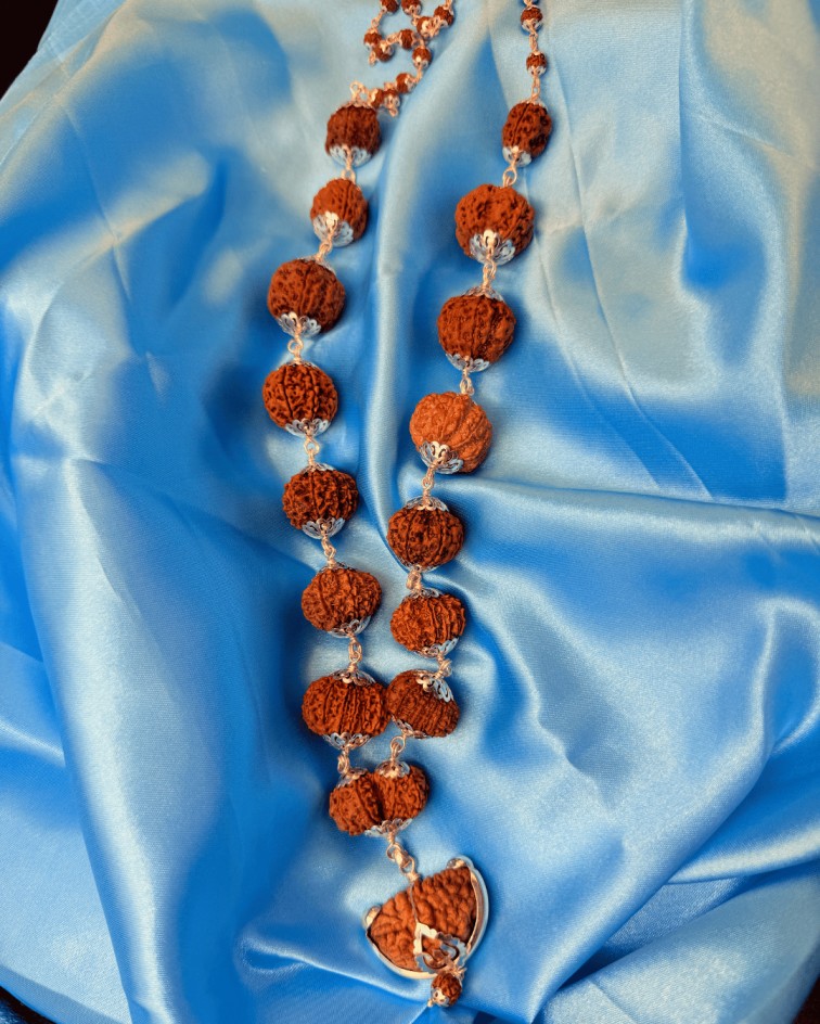 Siddha Mala is a sacred Rudraksha rosary that contains all major Rudraksha beads — usually from 1 to 14 Mukhi, along with Gauri Shankar and Ganesh Rudraksha. It represents the complete cosmic energy system and is believed to give the combined benefits of all deities, planets, and elements.